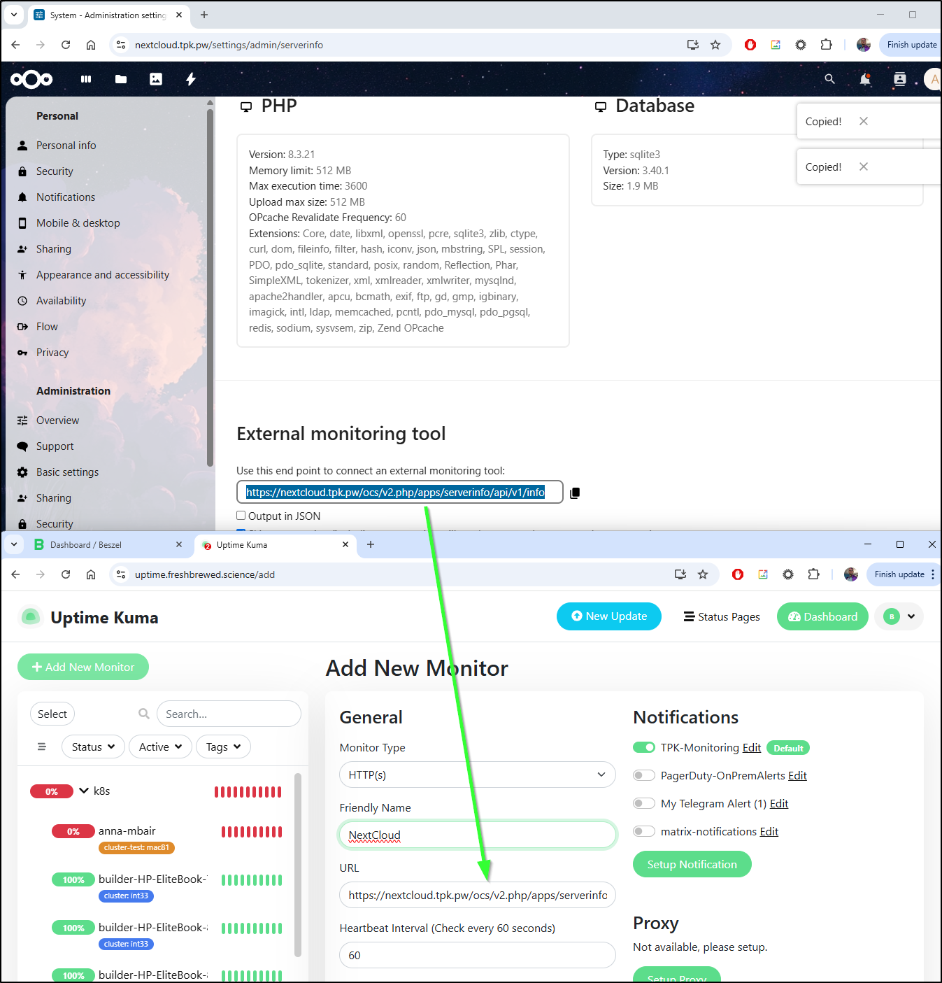 Under “External Monitoring Tool”, we can pull a URL that I could put in something like Uptime Kuma