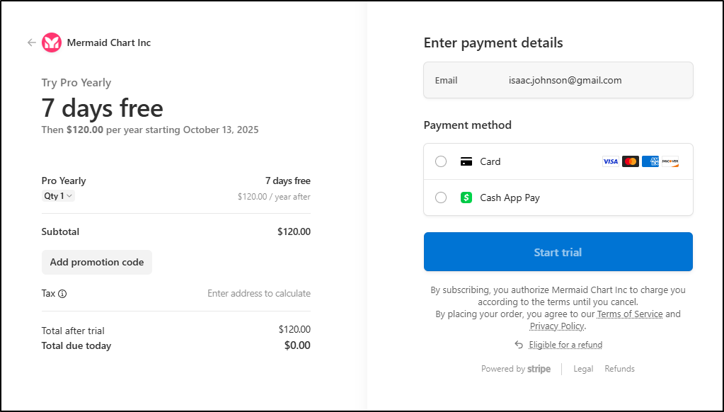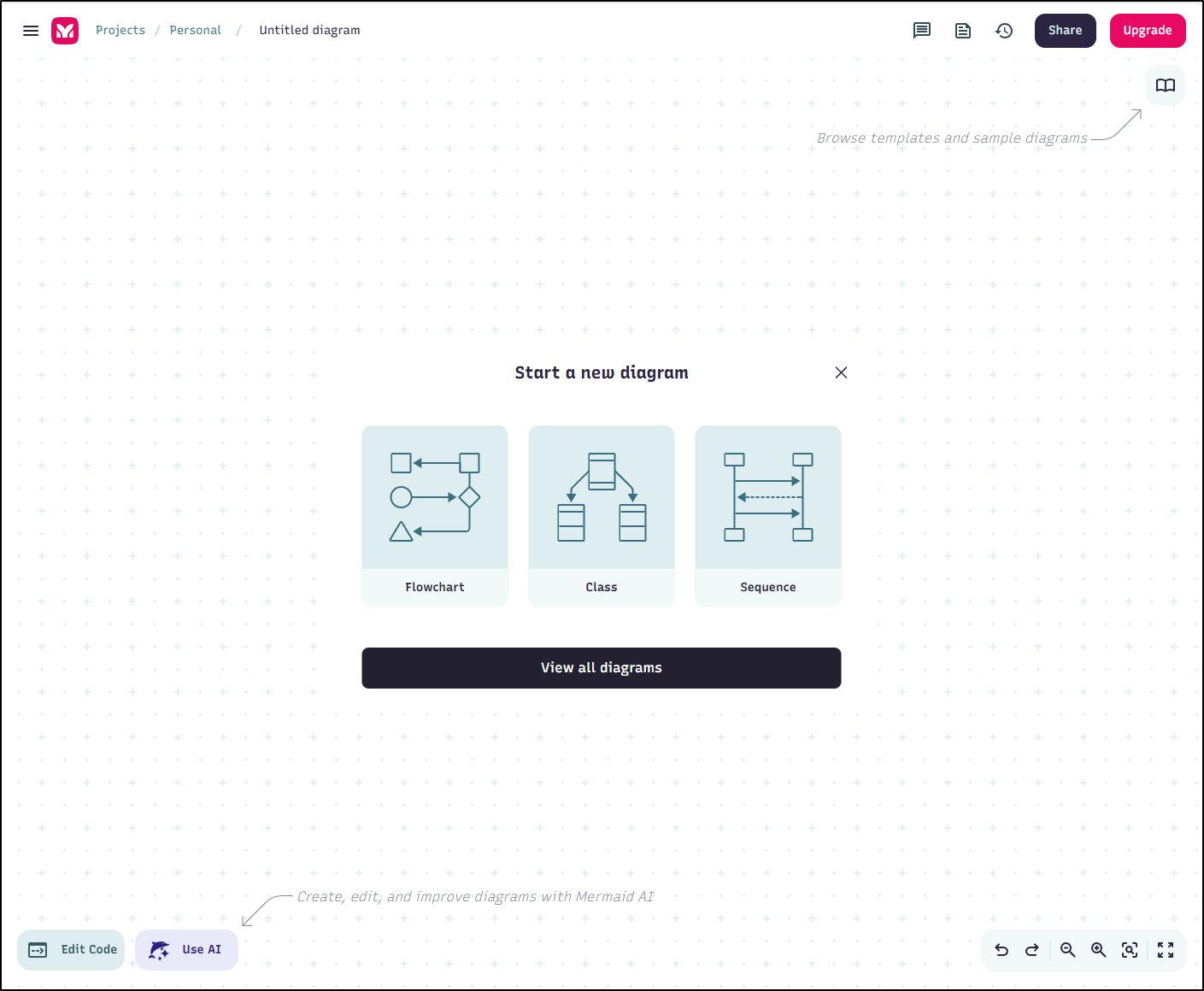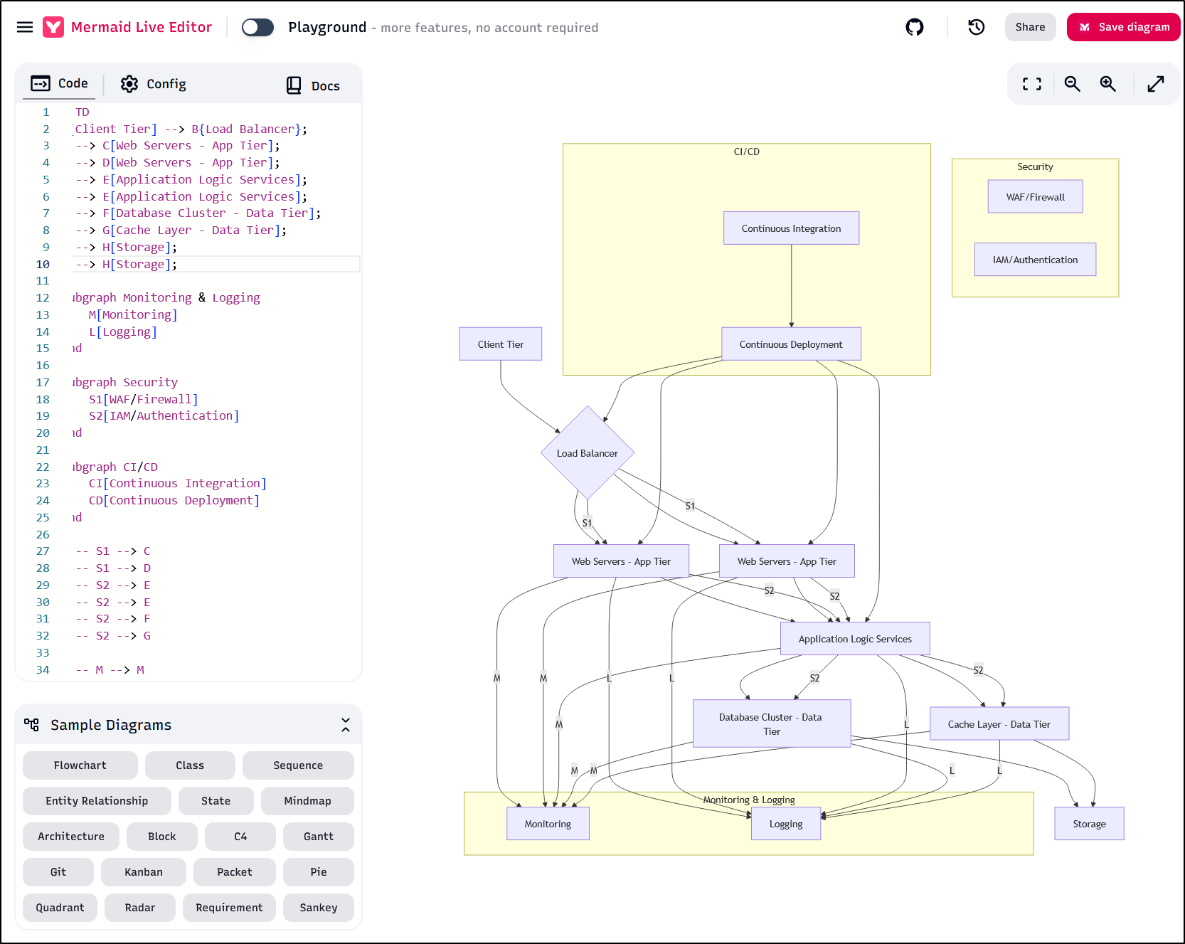 The other link, that was an advert in some newsletter I was reading, was for Mermaidchart. I use the live editor often but I never really explored their SaaS offering (which does have a free tier).
