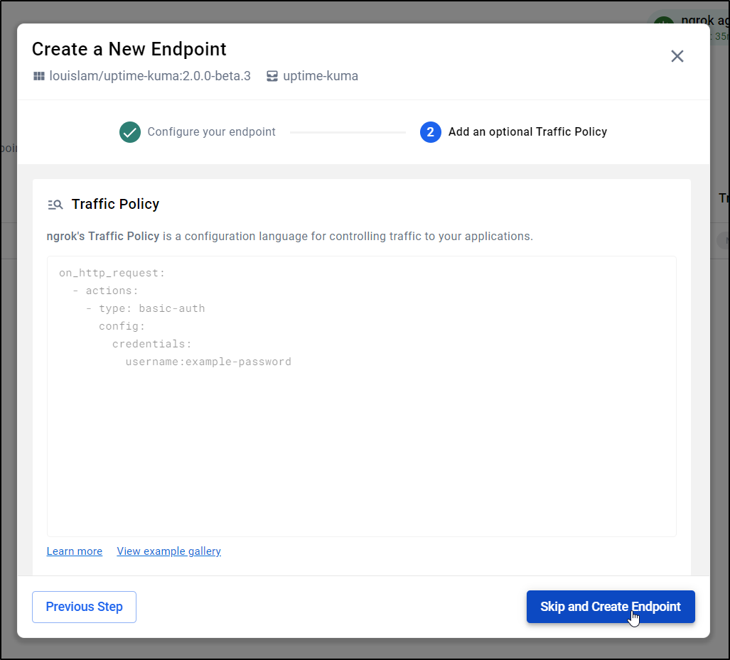 I’ll skip the traffic policy, but it is a nice way to wrap a service with a password, for instance