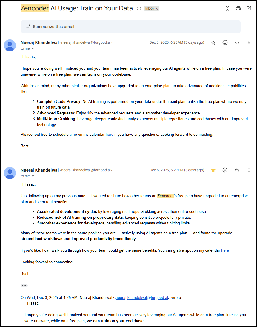 I generally assume most of these GenAI tools, especially those with a free tier, are using my data to train. I appreciated how Zencoder made that obvious.