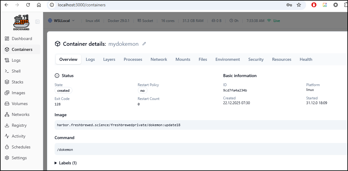 Though, lest you thought I forgot, I did test the container ports on the newer Ubuntu host and it too gave that JSON GO struct error so it was not WSL related: