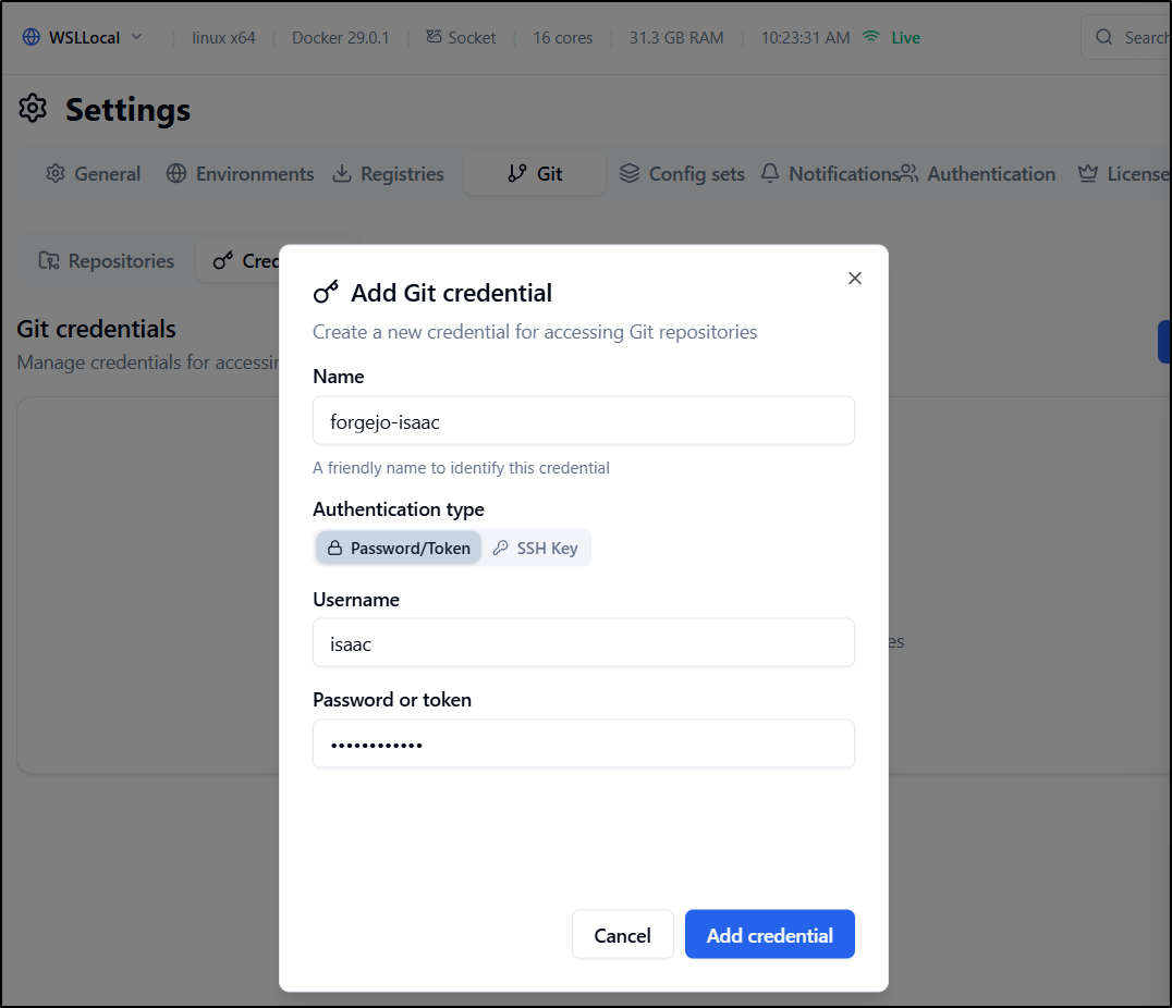 I then went to the Registries and clicked “edit” on Docker Hub to set my own creds