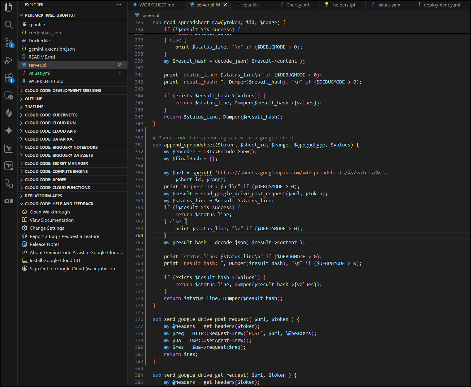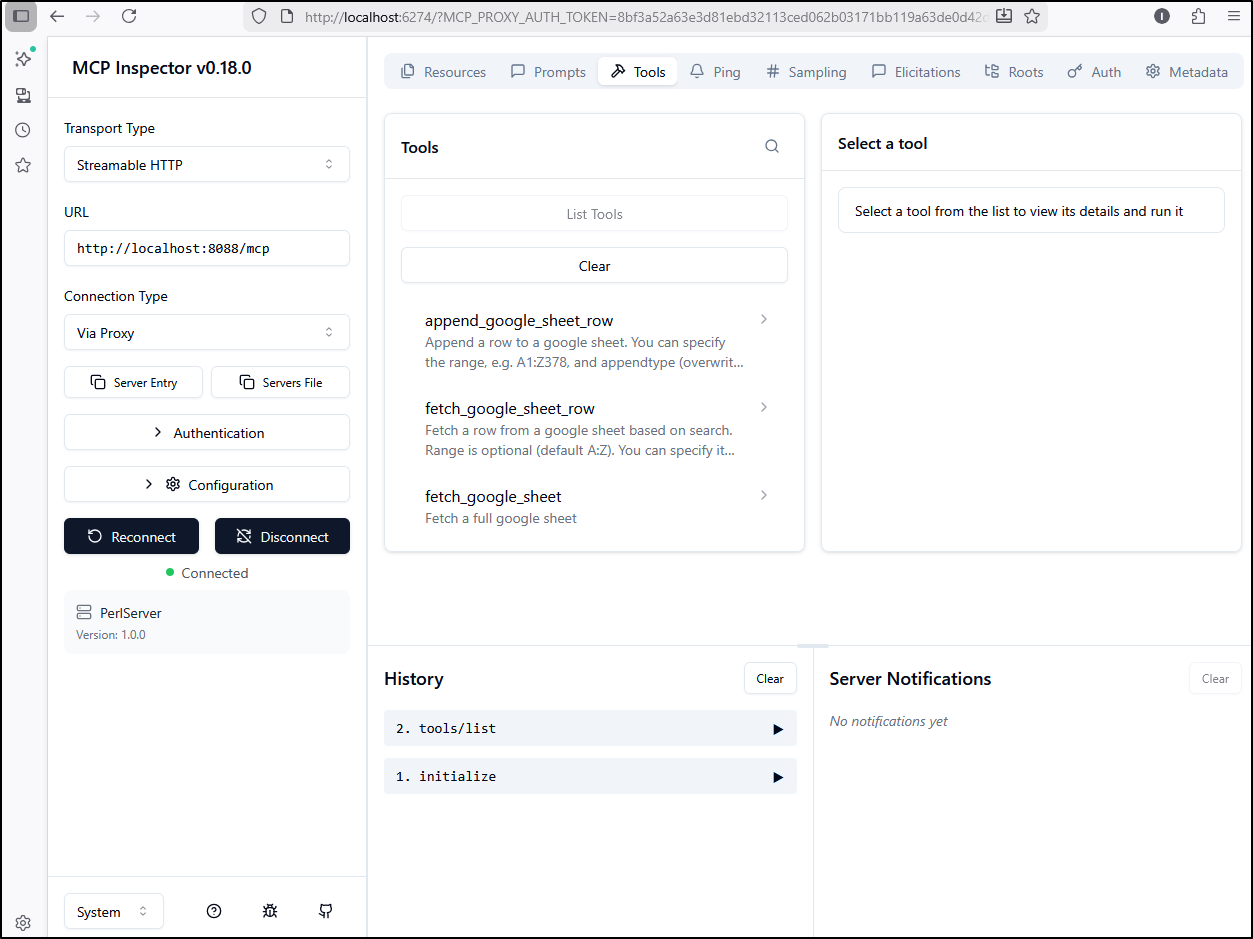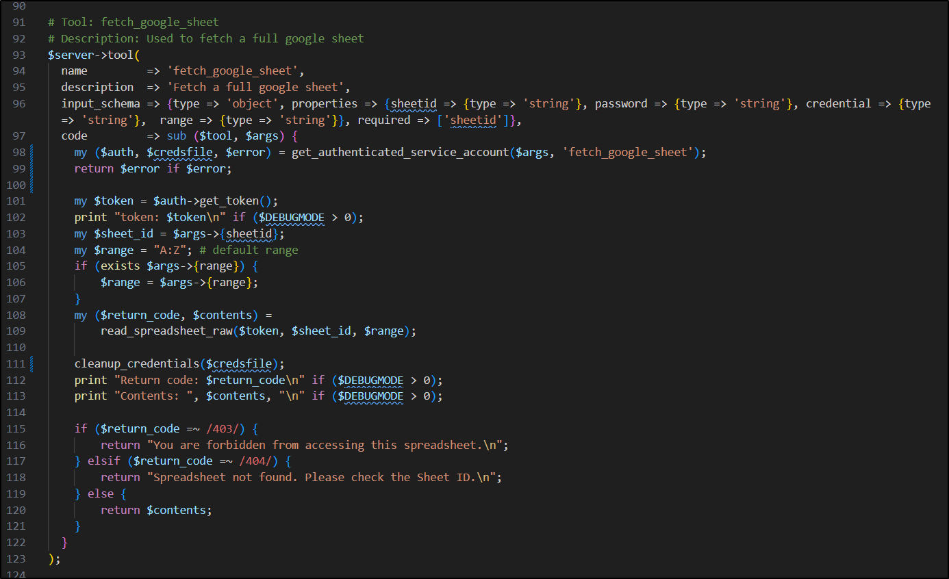 Earlier this week I posted my first article on PerlMCP which I pushed to Codeberg as a version1.0 tag. That code provides a Perl-based MCP server of type httpStreamable tied to a fixed GCP Service Account credential and just protected by a rotatable password.