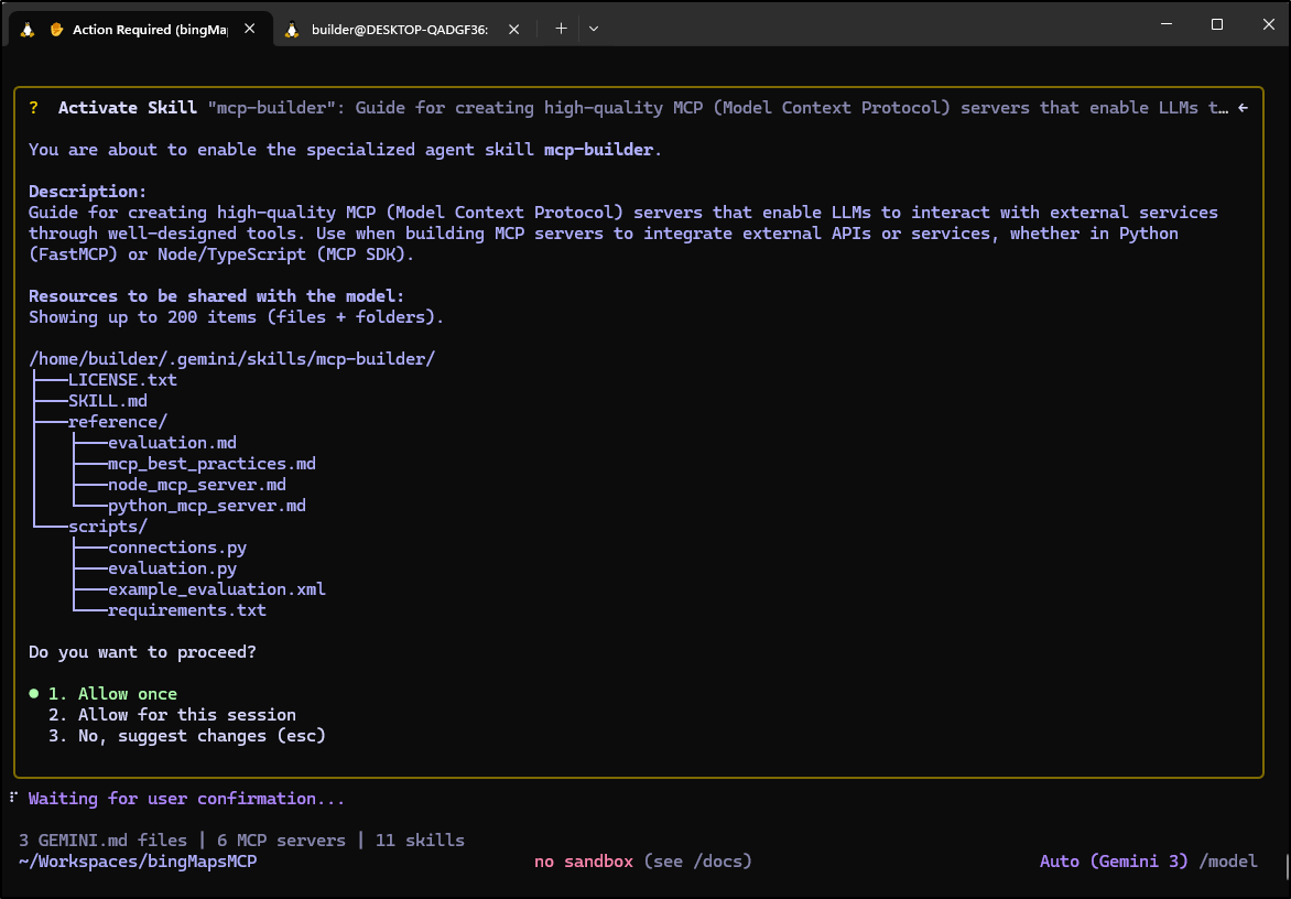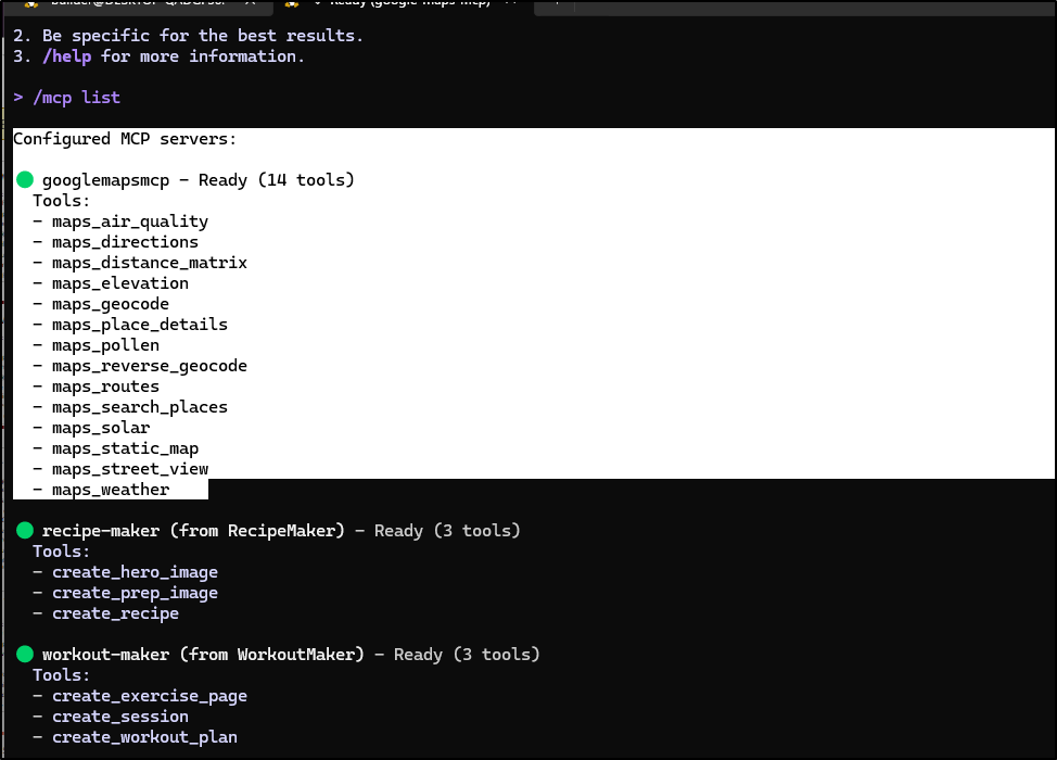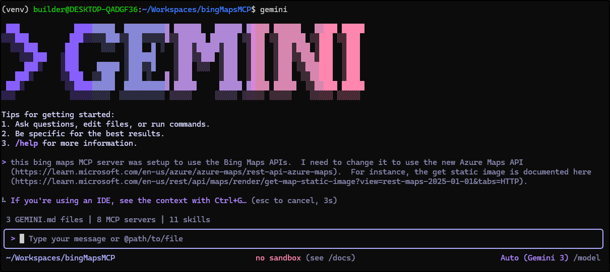 (venv) builder@LuiGi:~/Workspaces/bingMapsMCP$ gemini mcp add \