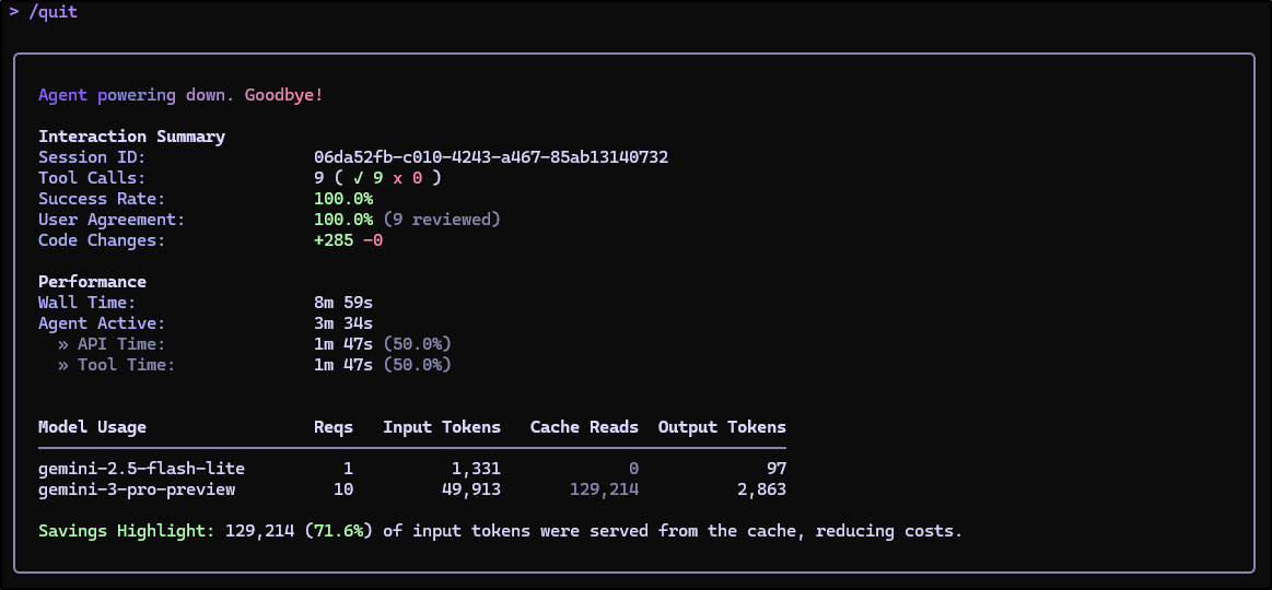 While I went back and forth, I didn’t really make much more progress and when Gemini CLI would have an error, it would just work around it with a python script.