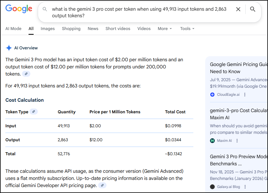I bring this up not to be a shill for Google, rather, in some other slack chats of which I take part, I hear of colleagues burning through $100s on tokens to build things and it saddens me they are spending so much money unnecessarily.