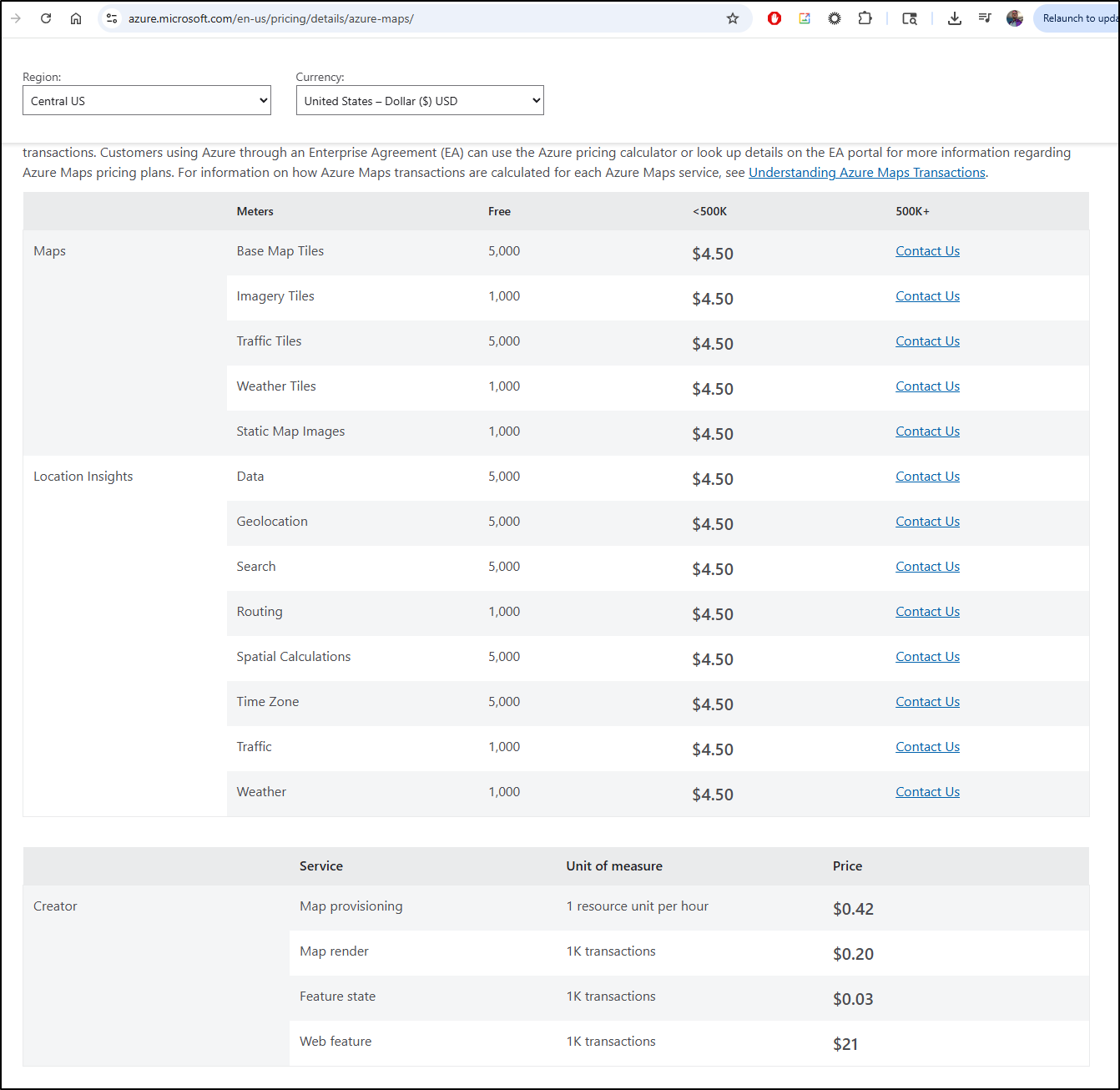 They have a link to “Understanding Azure Maps transactions” that leads to an empty page with “Bad Request” - not looking good Microsoft