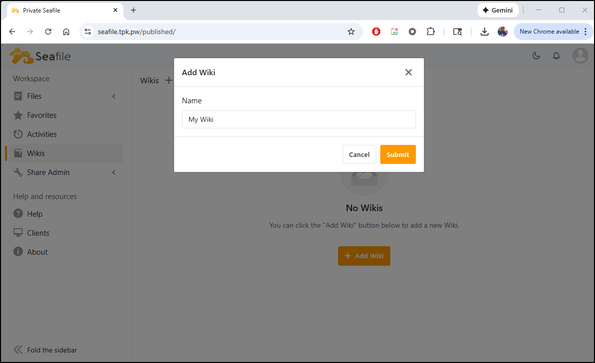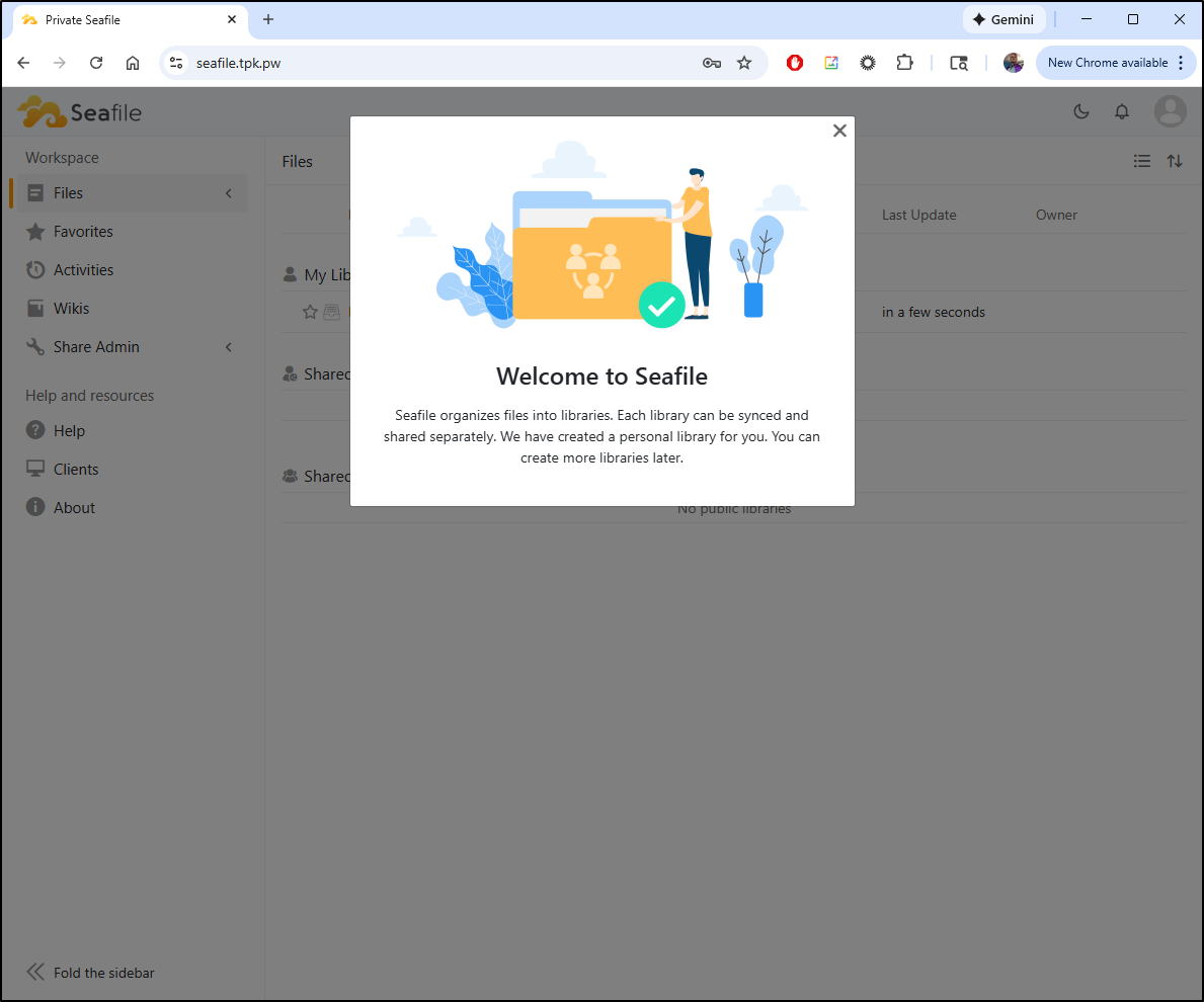 Also from a Marius post I noted Seafile. Seafile looks to be a much more complete file sharing and wiki suite which can run in Docker. We’ll give that a shot as well.