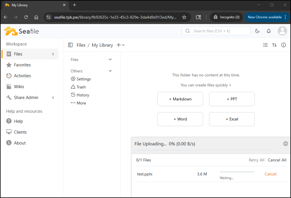 Seafile started okay, but quickly fell down on any file of size. I tried many different options - from Docker to Kubernetes. The company itself is based in China and Singapore and has been around since 2012 so perhaps there are just bugs with this latest version as it’s less than a month old.