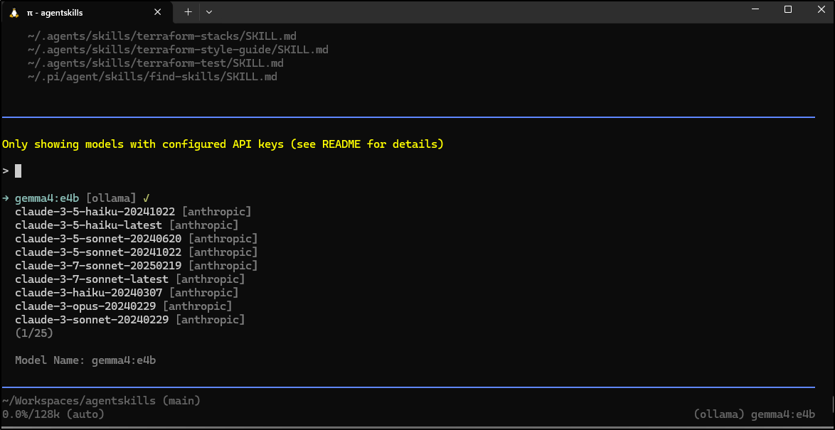 I pivoted to Pi in WSL, but using the more powerful laptop (updating the ~/.pi/agent/models.json)