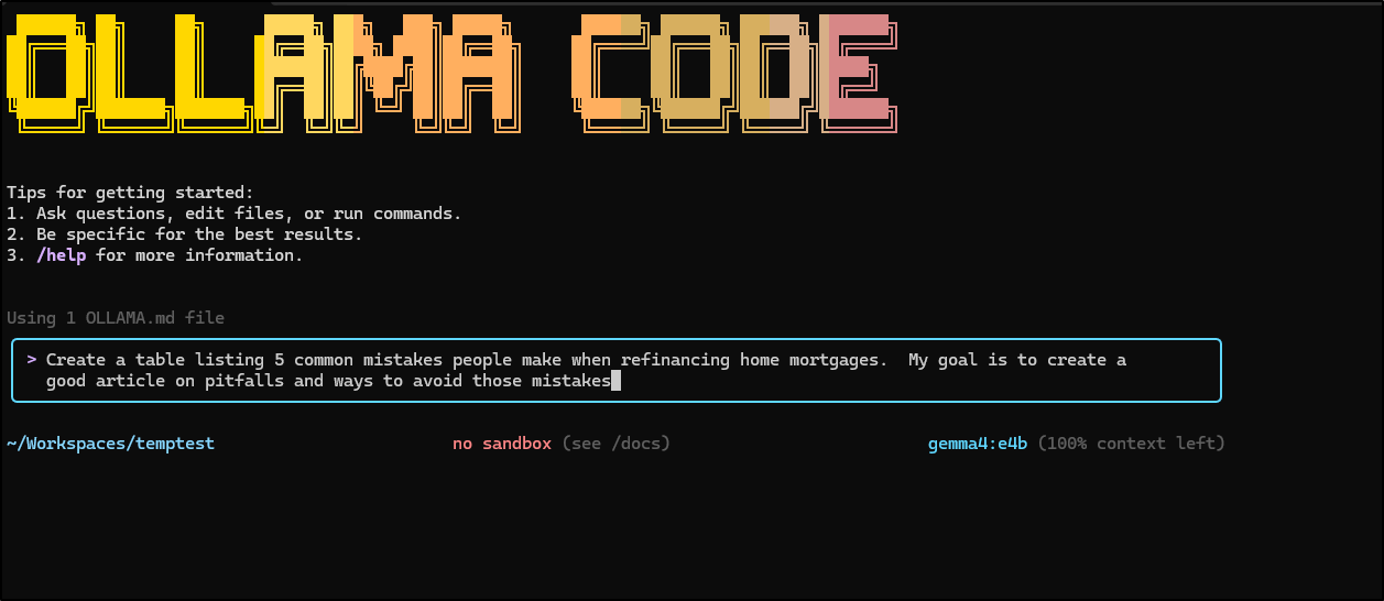 I even tried Ollama code