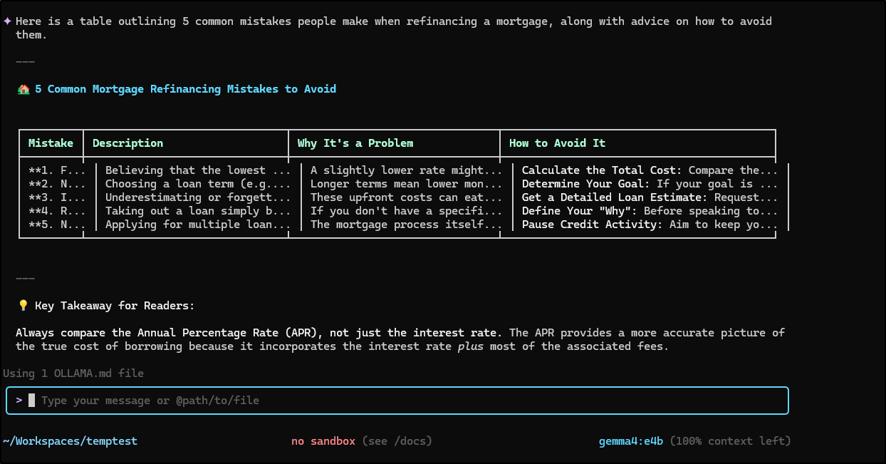 When I pivoted to using Gemma4 for ideaation it did fantastic. While I’m not planning to write blog posts on refinancing, using it to come up with ideas for MCP vs Skills is something I might do. The use case here for such things becomes apparent when you are in the life phase with kids in sports.