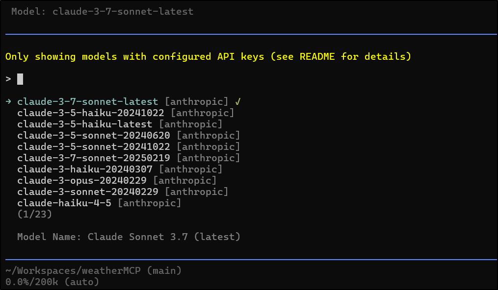 I picked the latest claude-3-7-sonnet-latest to use.