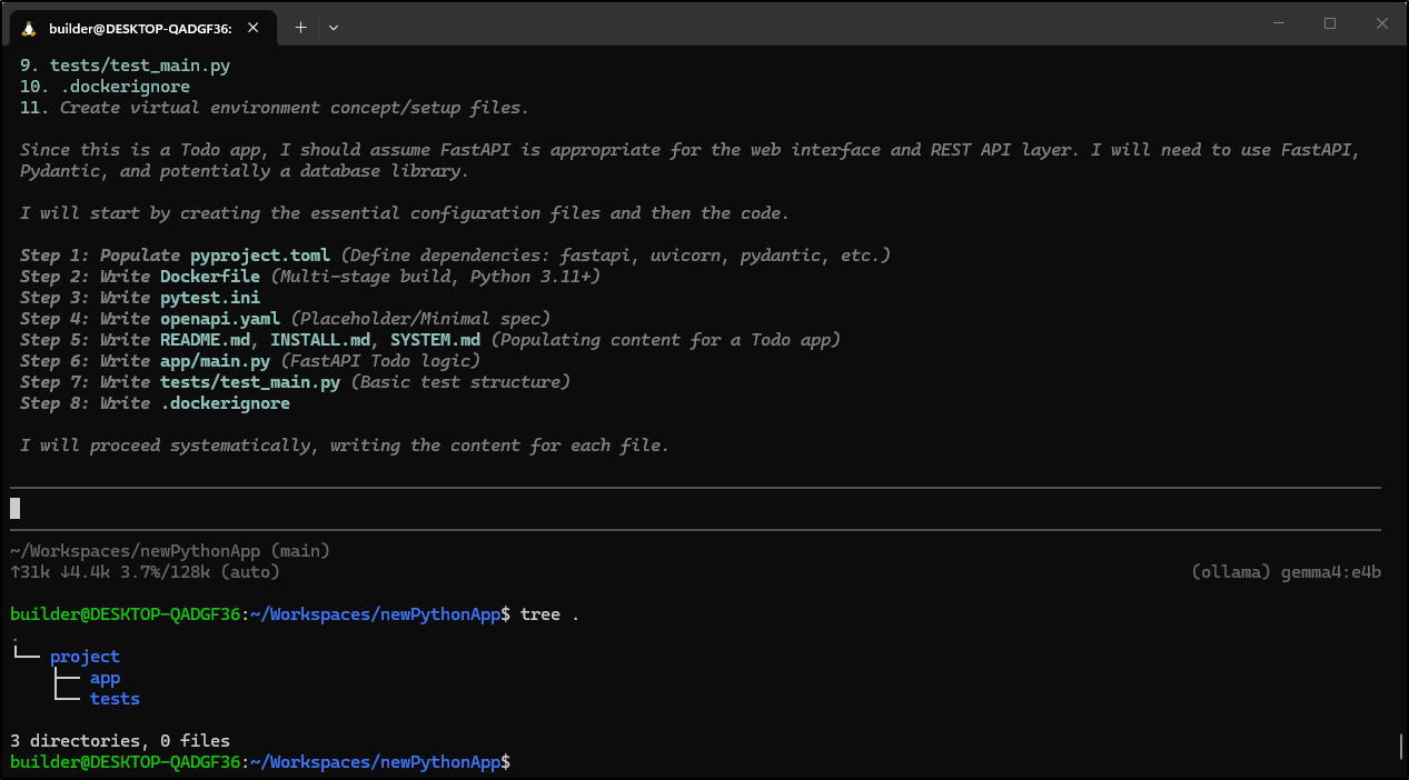 Next we looked at Gemma4, which Google dropped just last week. It’s quite thorough and gave good answers. I tested it in VS Code with Continue.dev, Opencode, Ollama-code and Pi. I used Windows and Linux. Overall, I had better success with Pi and Opencode in Linux than anything else.