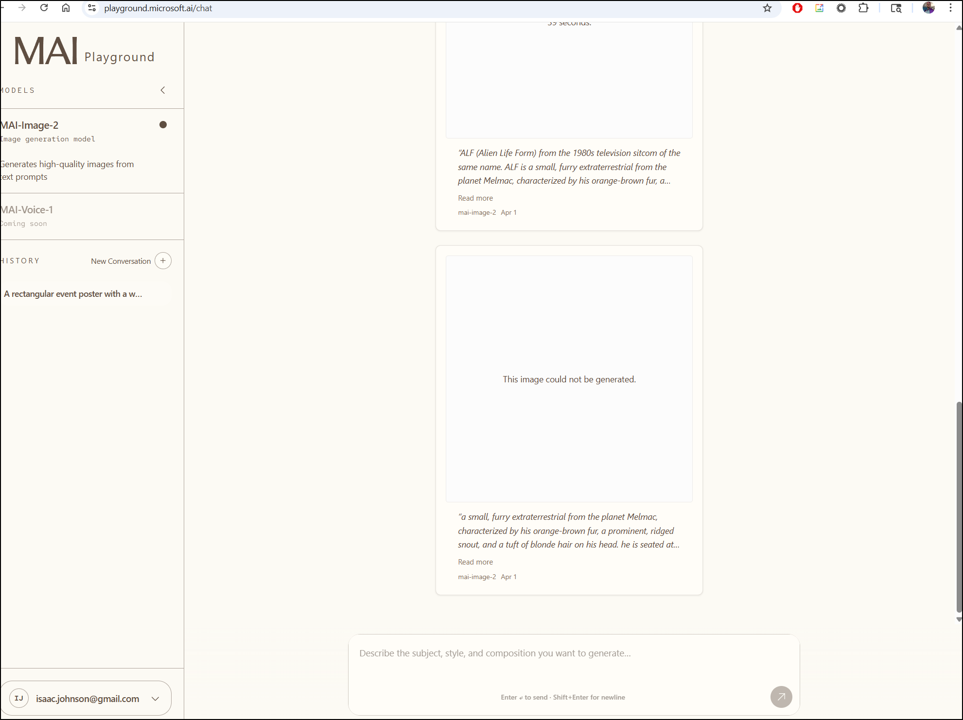 Overall I found MAI slow, and often rejecting my prompts. I found I got better results in all the other tools. I even tried using MS Paint (which yes, just uses Copilot)