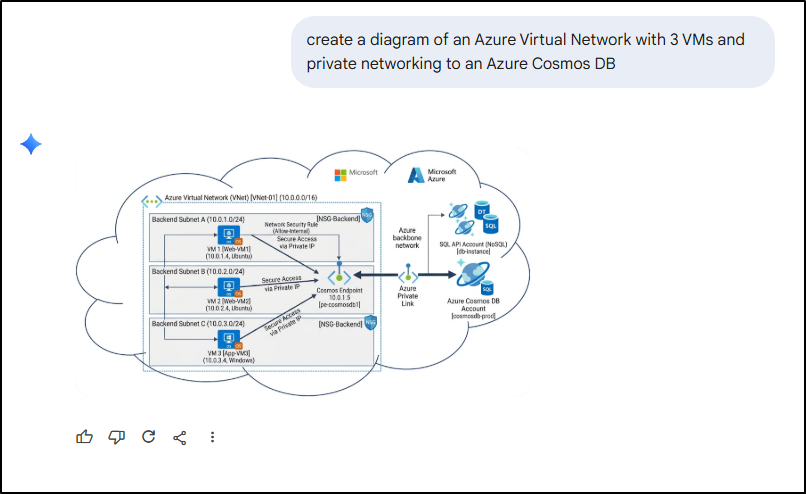 I asked it to pivot to GCP and, well it is right, but does look like a Microsoft product made the diagram