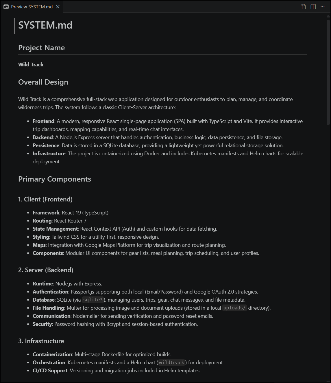 Do not modify any files; only provide the Markdown text in SYSTEM.md.