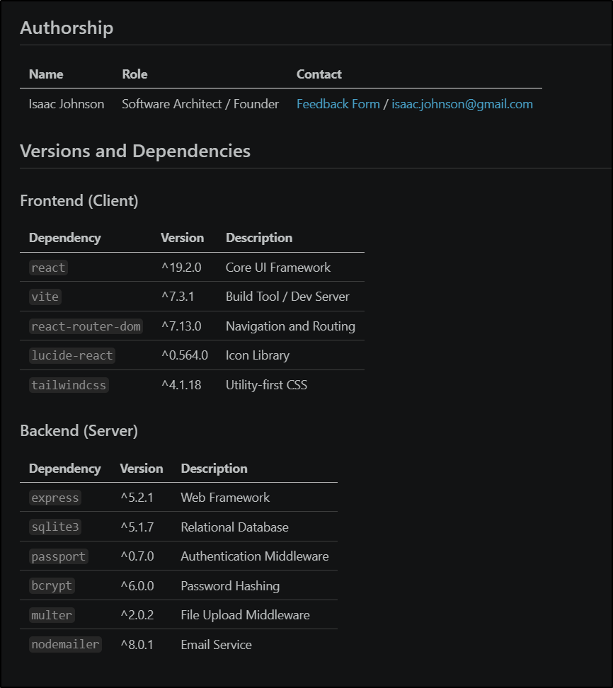 Lastly, let’s look at the “Authorship” and “Versions and Dependencies” sections