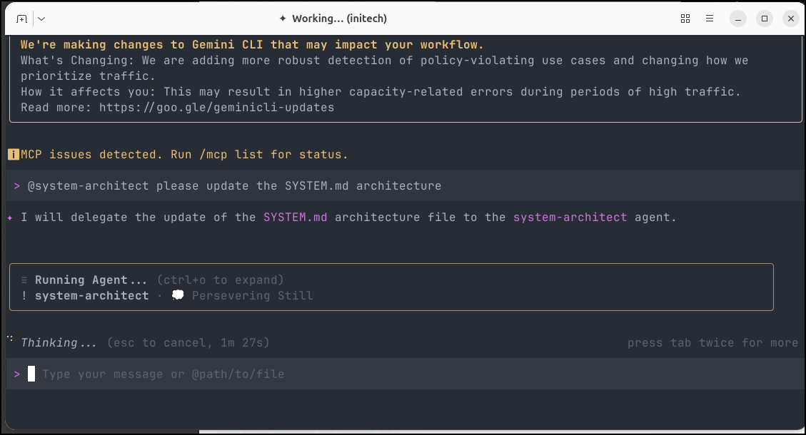 (base) builder@LuiGi:~/Workspaces/initech$ cat ~/.gemini/agents/system-architect.md
